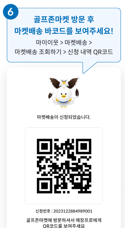 5. 마켓배송 신청 후 QR 확인 : 마켓배송 신청을 확인 한 이후 예약을 완료하면 됩니다.
