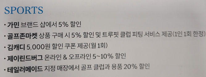 벤츠 구매 이후 멤버십을 활용하여 다양한 혜택을 받을 수 있습니다. 스포츠(골프) 카테고리로는 골프 용품, 골프 의류를 지정된 업체와 할인받아 이용할 수 있으니 아래 글을 끝까지 읽고 할인받으세요.